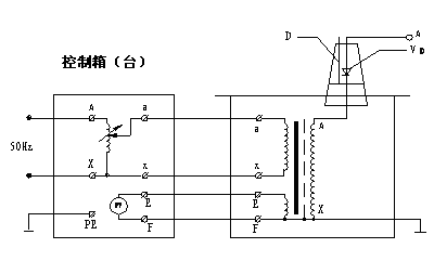 圖3:交流氣體式試驗變壓器接線 2. 交流帶抽頭氣體式試驗變壓器:見圖4