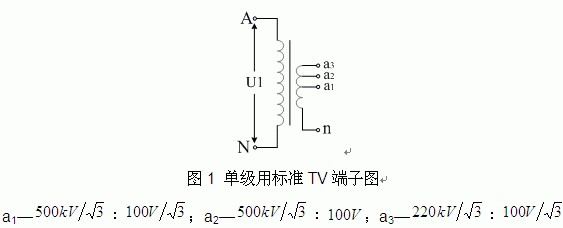 1、檢定500kV及以下電壓等級電壓互感器時,端子圖見圖1所示;