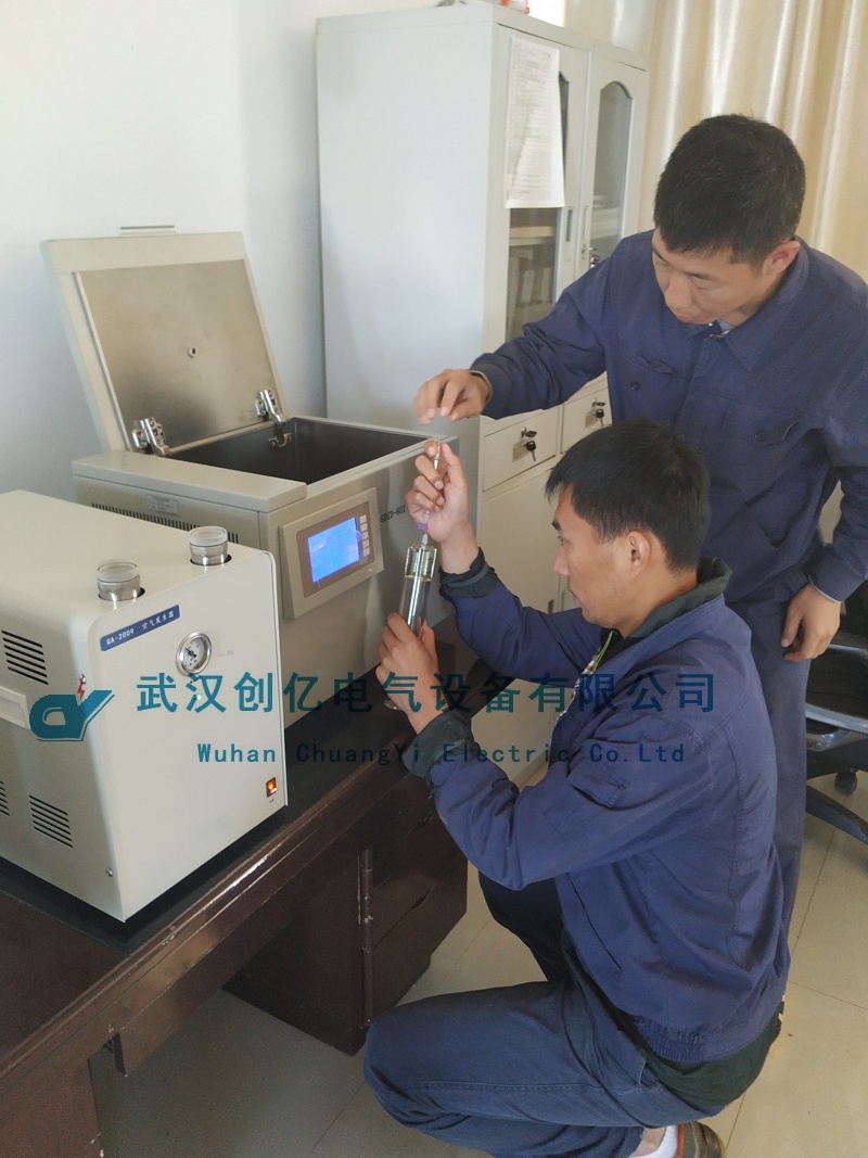 創億電氣應邀前往云南為三峽風電調試其購買的一批油氣測試設備。其中包括CY-9560B 電力系統專用油色譜分析儀、CYOT-80 絕緣油介電強度測試儀以及CYJD-3A SF6氣體密度繼電器全自動校驗儀等測試設備。