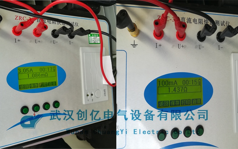 首先用CYZRC系列直流電阻快速測試儀做變壓器的直阻測試。按照要求將測試儀和變壓器接線連接,接著指導客戶用100mA高壓繞組和3A低壓繞組進行測試,測出三相不平衡度符合國家標準,和歷史數據參照對比也達到要求!