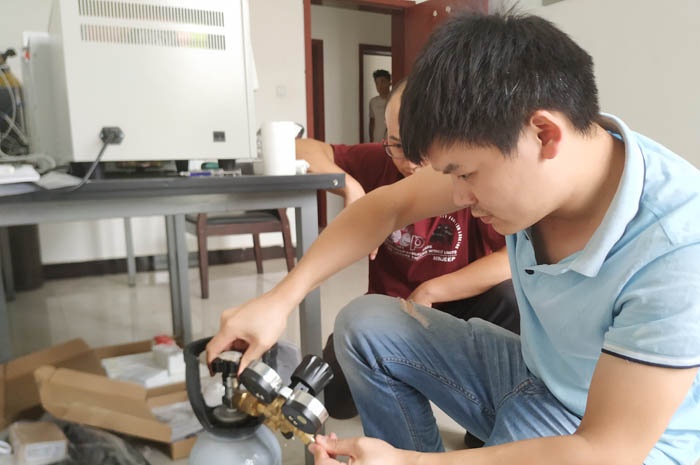 在現場對試驗設備清點、組裝,之后在客戶的組織安排下開始培訓。培訓主要圍繞試驗設備開機前的準備工作展開,指導客戶如何做堿液配置、氣路連接、檢漏等內容。