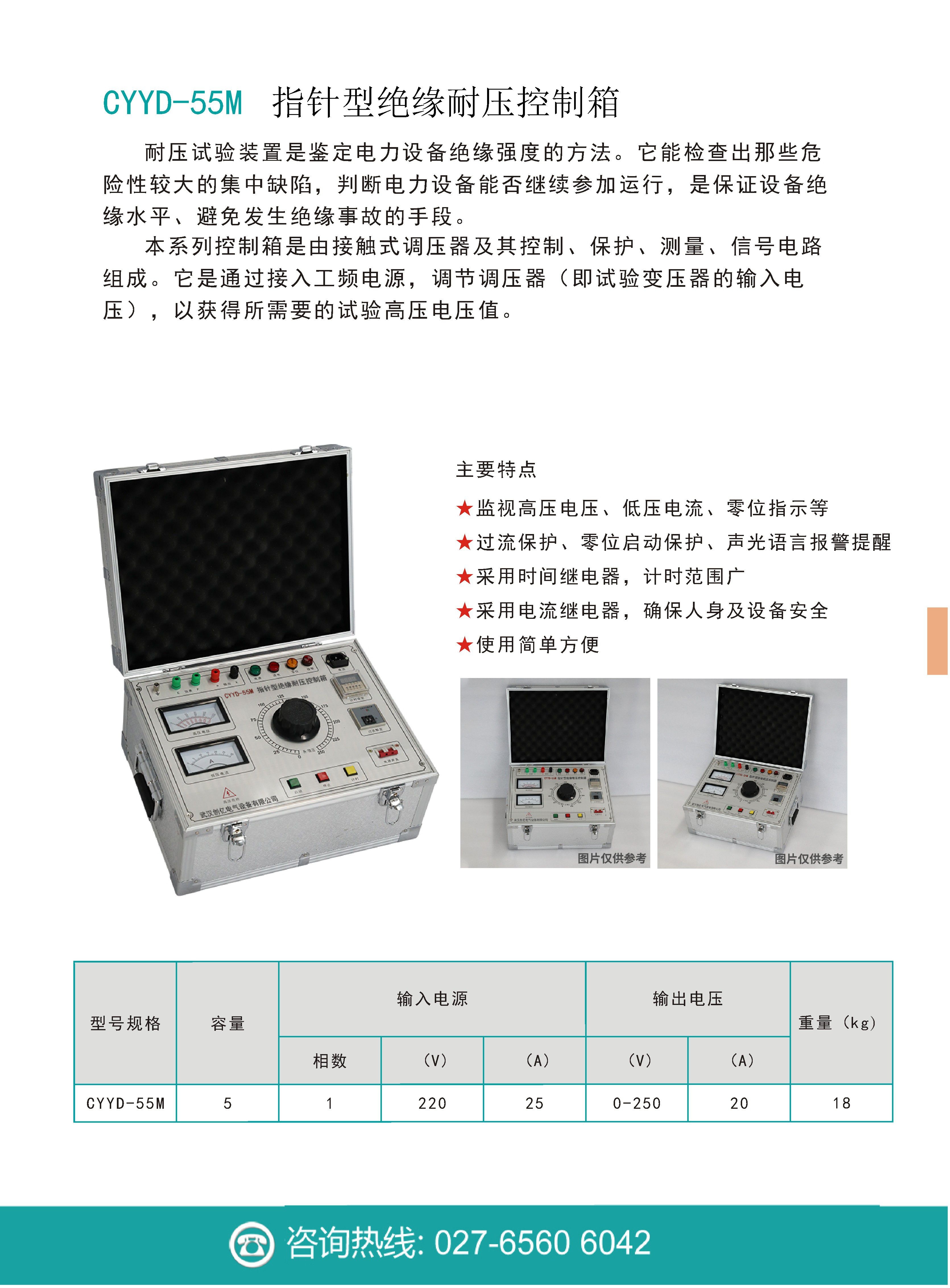 CYYD-55M指針型絕緣耐壓控制箱是鑒定電力設備絕緣強度的嚴格、有效和直接的方法。它能檢查出那些危險性較大的集中缺陷,對判斷電力設備能否繼續參加運行具有決定性作用,是保證設備絕緣水平、避免發生絕緣事故的重要手段。