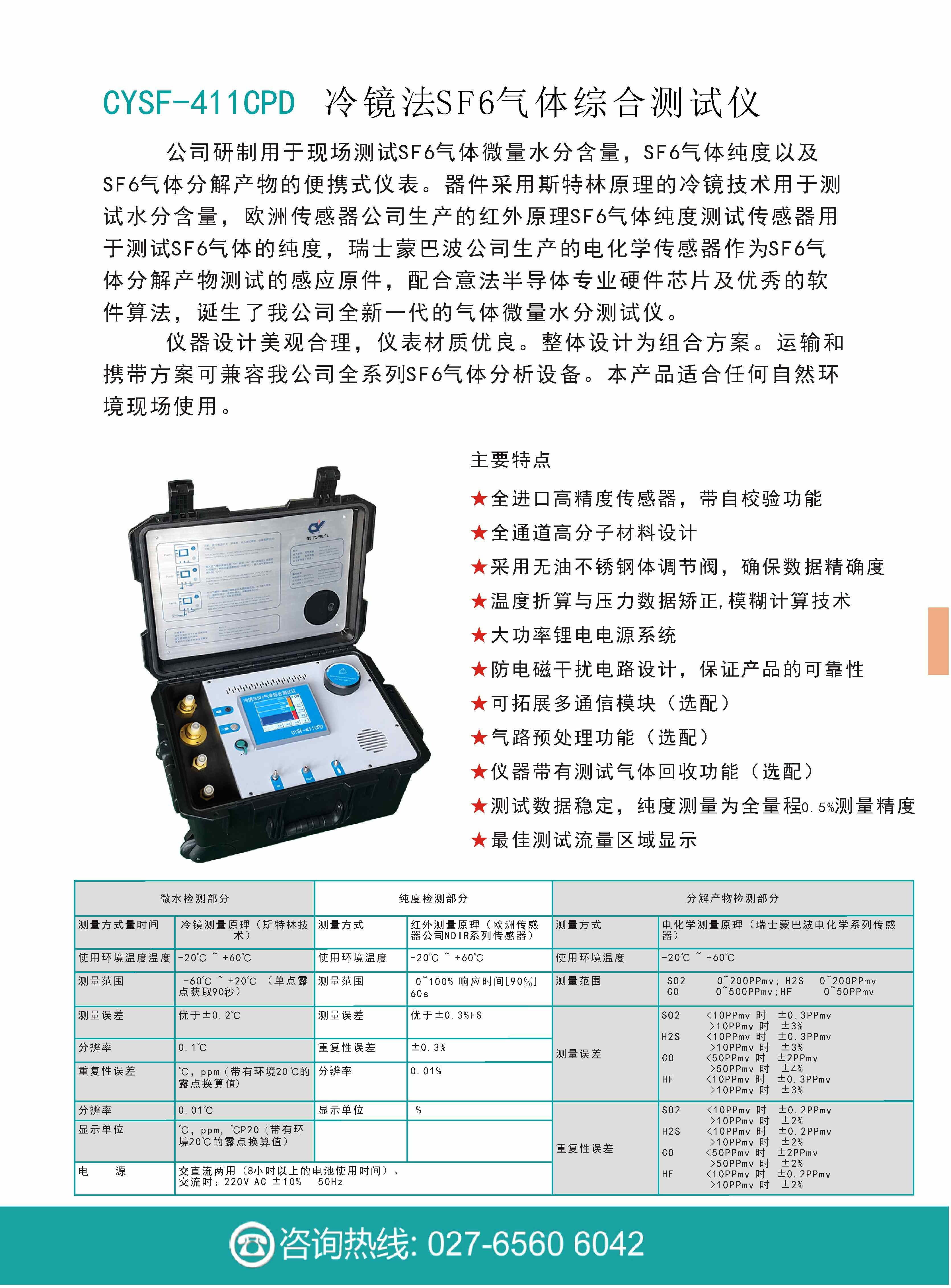 13. 純度測量為全量程0.5%測量精度,可以應用于高濃度SF6氣體測量,也可用于70%含量SF6氣體測量。