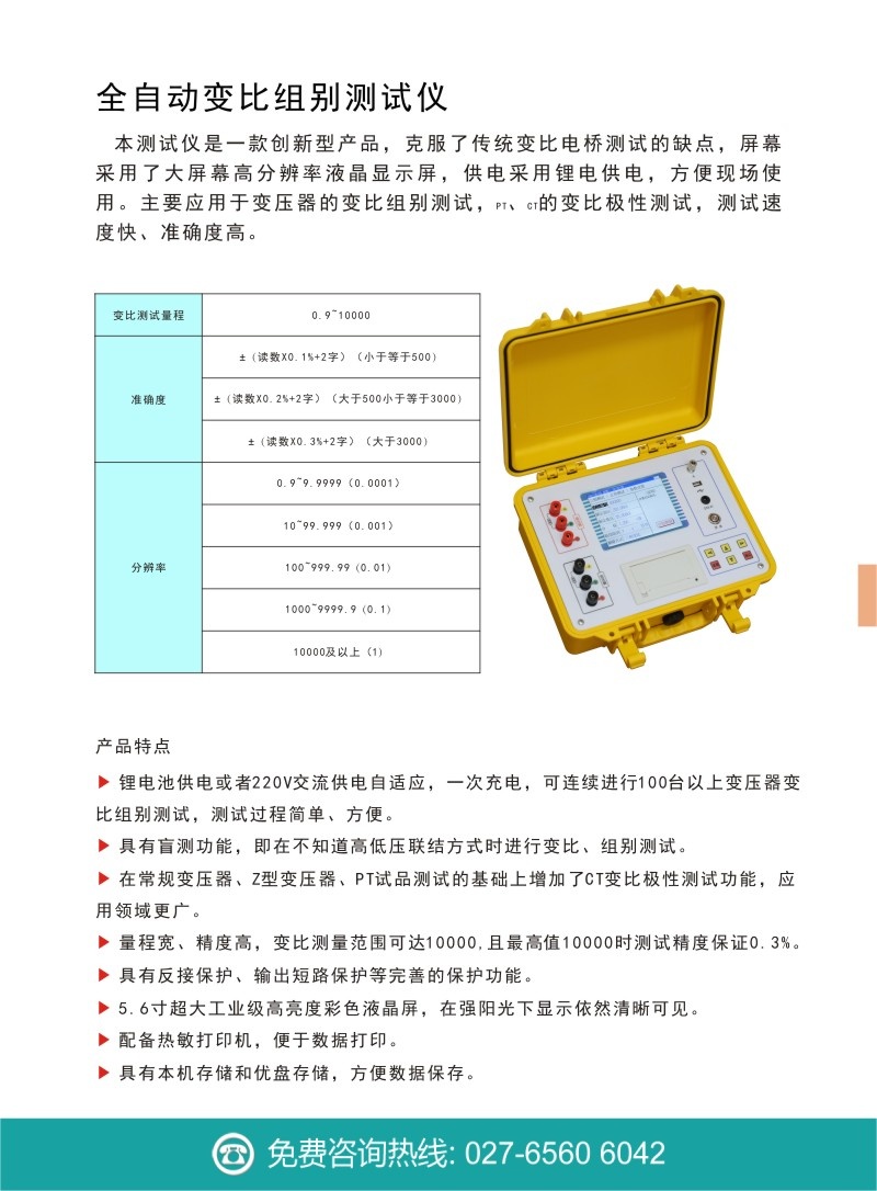 產品主要應用于變壓器的變比組別測試,PT、CT的變比極性測試,測試速度快、準確度高。