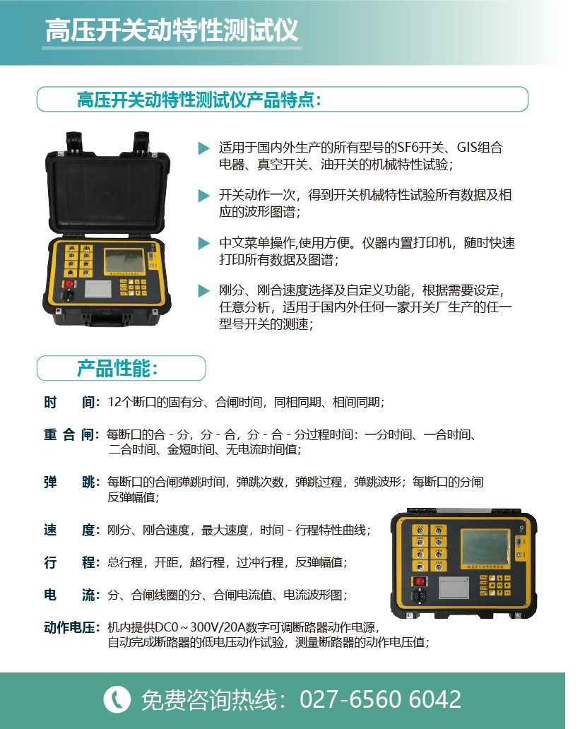 剛分、剛合速度選擇及自定義功能,根據需要設定,任意分析,適用于國內外任何一家開關廠生產的任一型號開關的測速。